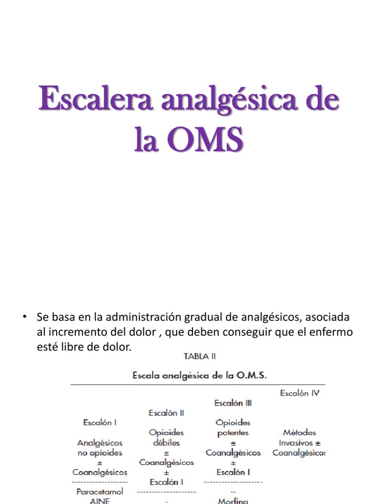 Escalera analgésica de la OMS - organización mundial de l from img.bluerock.es. Para más información pulse aquí para ir al website. We did not find results for: Check spelling or type a new query. Maybe you would like to learn more about one of these?
